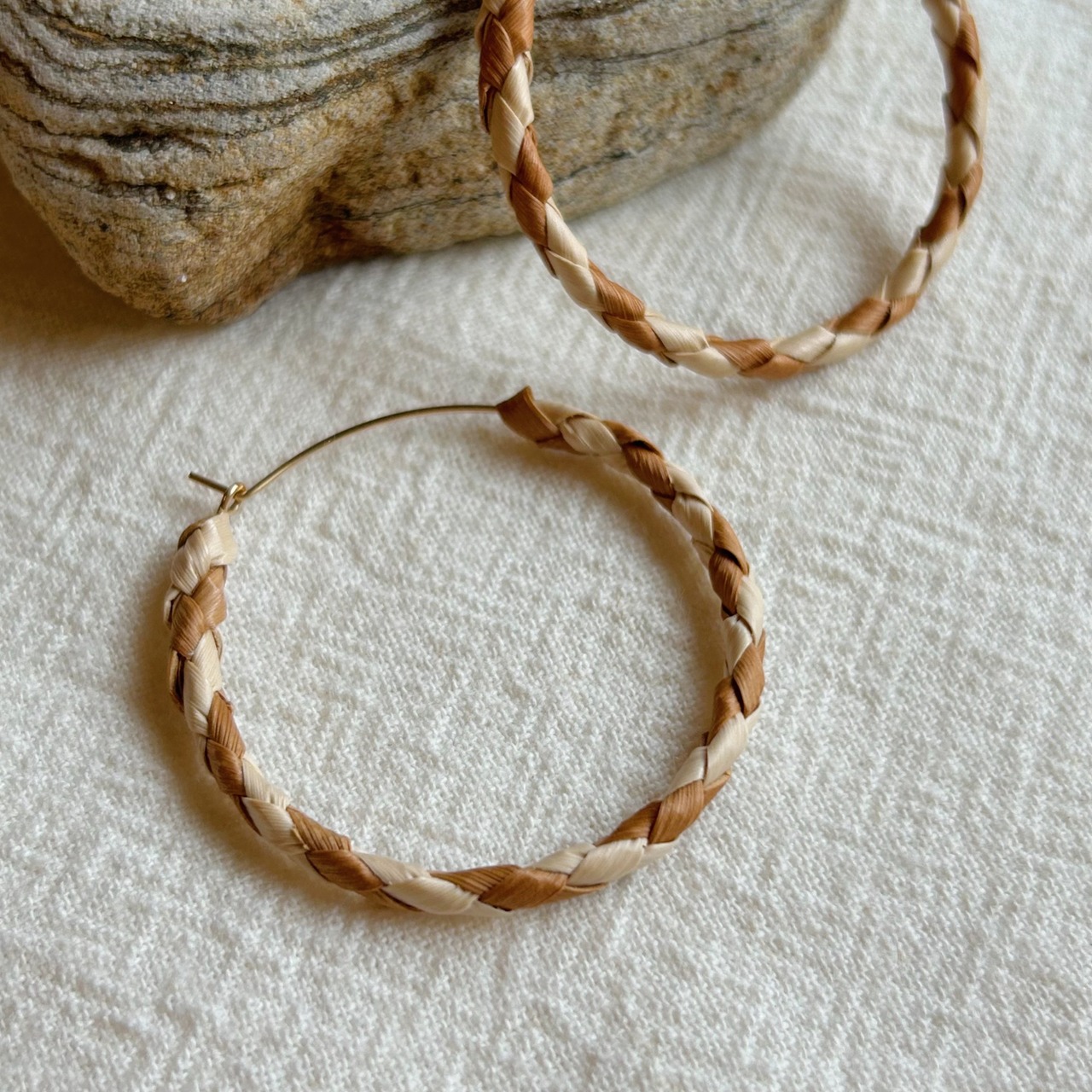 ひとつひとつ手作業で仕上げた、植物のぬくもりを感じられる世界にひとつだけのピアスです。