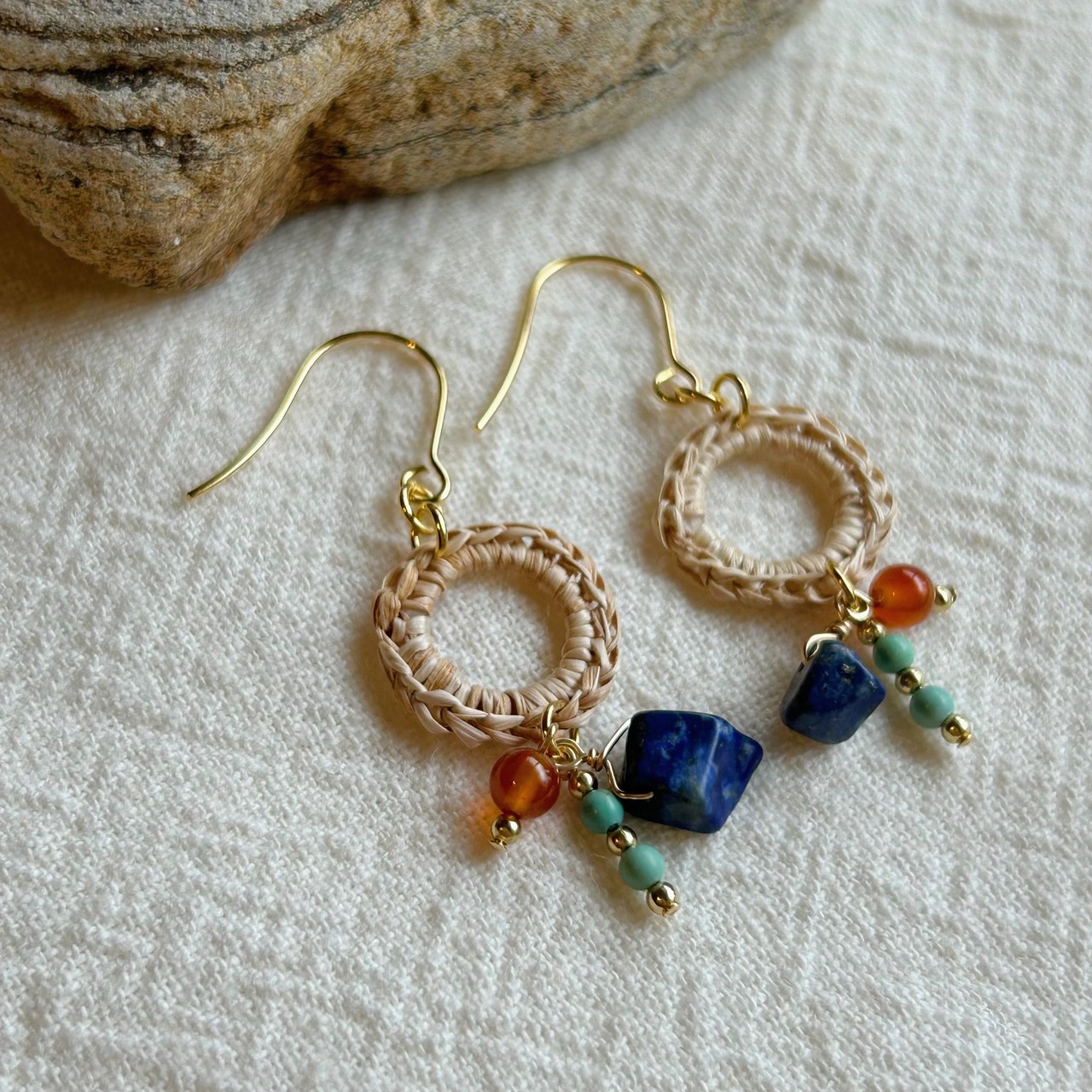ビーズ:ターコイズ、ラピスラズリ、カーネリアン