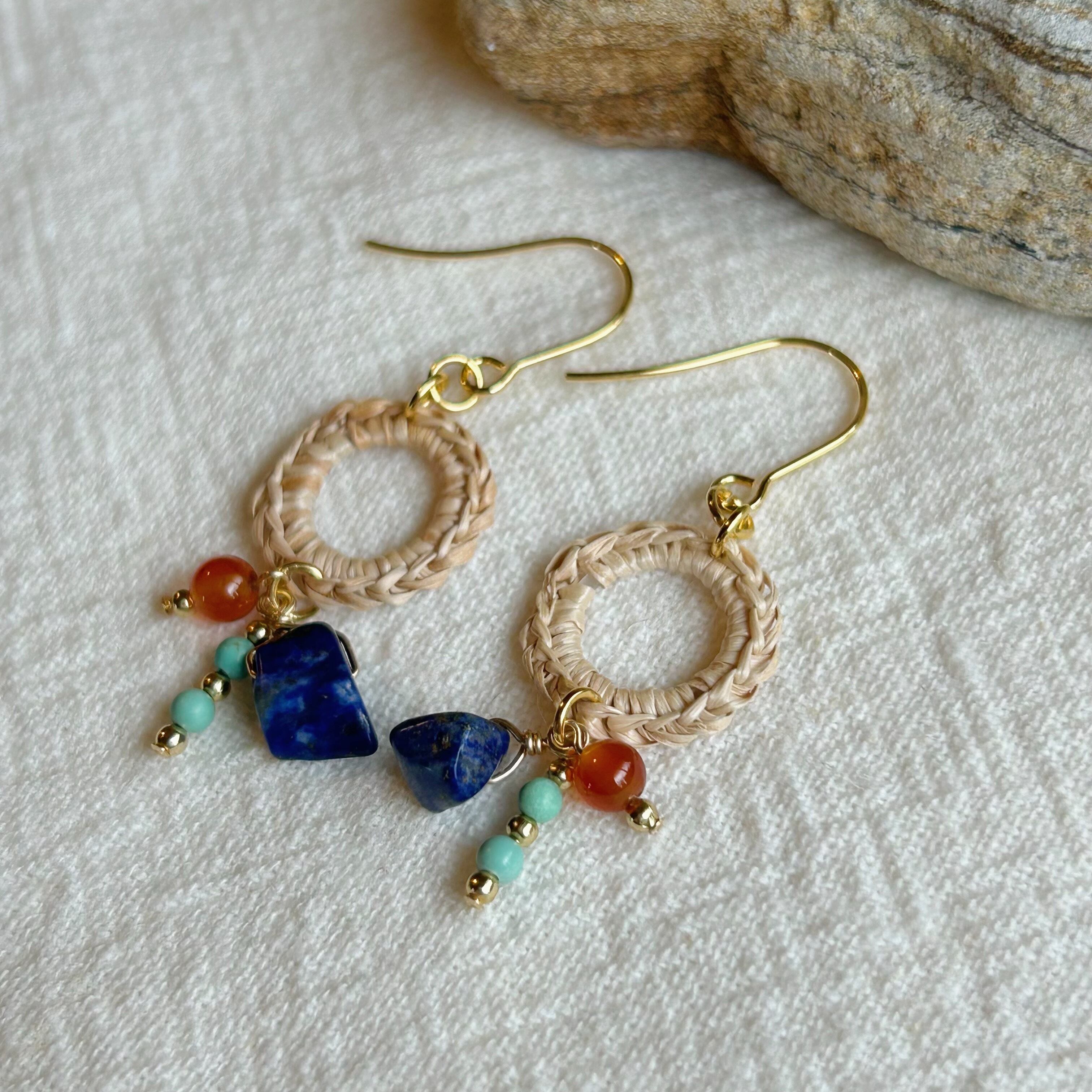 編んだ月桃の輪っかに天然石やチェコガラスビーズをあしらったナチュラルだけどちょっぴり個性的なシリーズ。