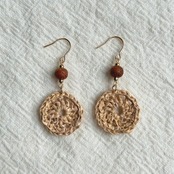 月桃の茎からとれる繊維を乾燥させ細く割き、ひとつひとつかぎ針で編んでいます。